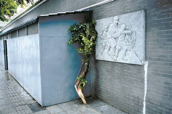 执信中学天河校区围墙外,一枝榕树残枝,广州常有这样的街头“装置”作品