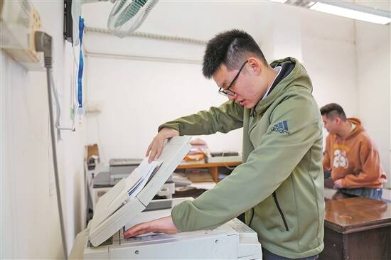 在文印室,森森学会了换墨盒、上纸筒、使用大型复印机等,成为包包的好帮手。这个学期开学前,包包还担心森森不来上班,特意去询问学校老师。