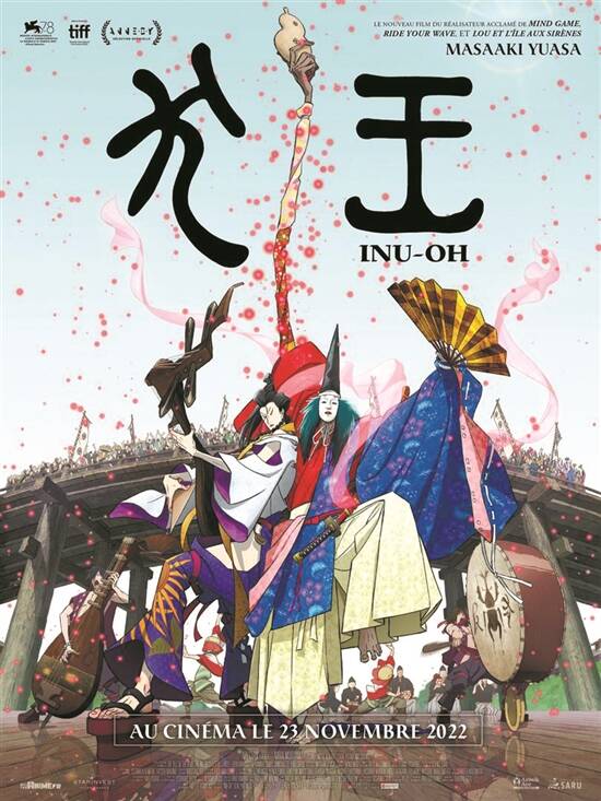 影片改编自古川日出男的小说《平家物语 犬王之卷》,采用摇滚乐和传统故事相结合的手法进行叙事,曾获第78届威尼斯电影节地平线单元奖最佳影片提名、第80届金球奖电影类最佳动画长片提名、第50届动画安妮奖最佳独立动画长片提名。影片由大友良英担任音乐制作,“女王蜂”主唱Avu-chan为犬王配音。