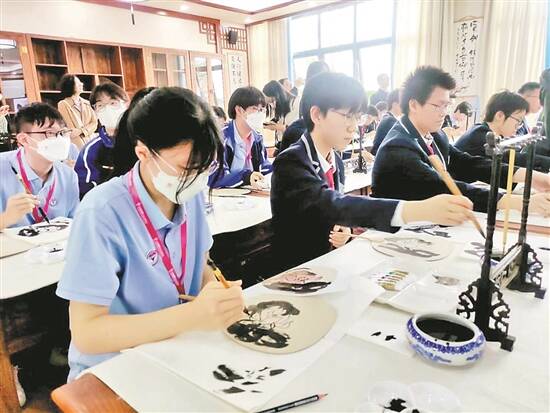 在执信中学安排的互动课程上,香港学生挥毫作画