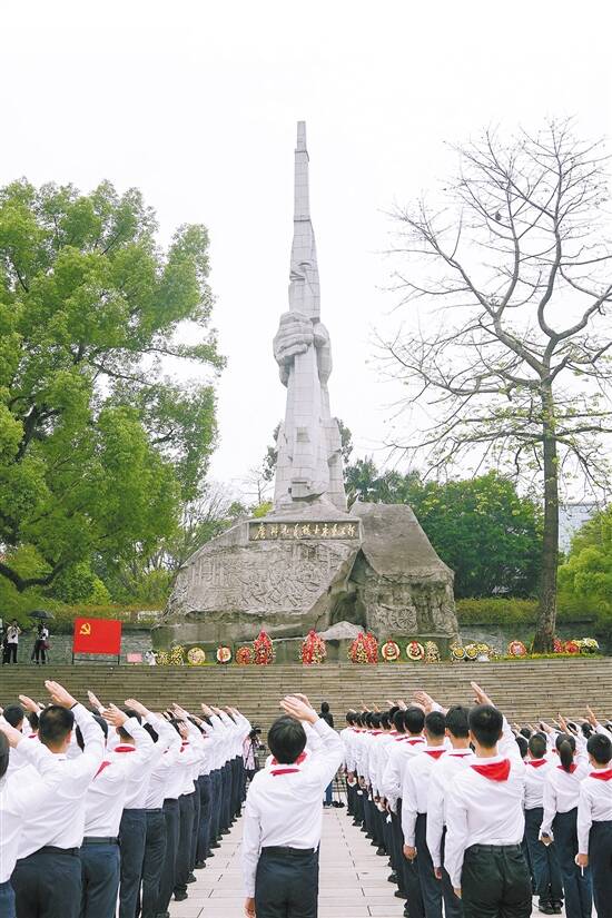 4日,广州市中小学生清明祭英烈现场活动在广州起义烈士陵园举行 羊城晚报记者 蔡嘉鸿 摄