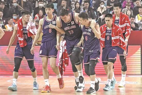 李炎哲(中)被搀扶下场 图/广州龙狮篮球俱乐部