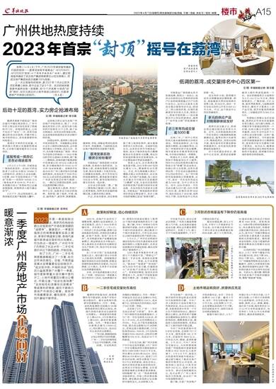今年广州首批供地中有8宗住宅用地,总面积72.7万平方米,建筑面积165万平方米,总起拍价269.6亿元,分布在天河、增城、荔湾和番禺。3月23日,今年广州首宗宅地出让,天河智慧城地块被广州城投城市更新集团有限公司以44.39亿元底价拿下。4月4日下午,备受关注的荔湾花地街羊城食品厂通过摇号确定了被武汉地产集团有限责任公司竞得,该地块网上竞价达14轮至封顶价19.3亿元,受到13家房企争夺。两宗宅地的顺利出让,充分证明了广州土地市场活力的恢复,房企对广州市场预期的看好。