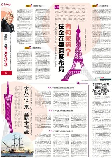 广东与法国也有着十分密切的经贸关系,在目前中国对法贸易总额中,广东占到约五分之一。此次随同马克龙访华的代表团成员中,包括多位法国政府高级官员、60多位大企业负责人,还有20多位文化界人士。随行企业不少在粤深度布局,把广东作为重要业务市场。