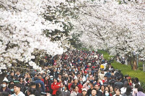 3年前,武汉大学向援鄂医疗队员以及参与湖北疫情防治的医护人员发出赏樱邀约,从2021年开始连续3年为他们开设赏樱绿色通道。
