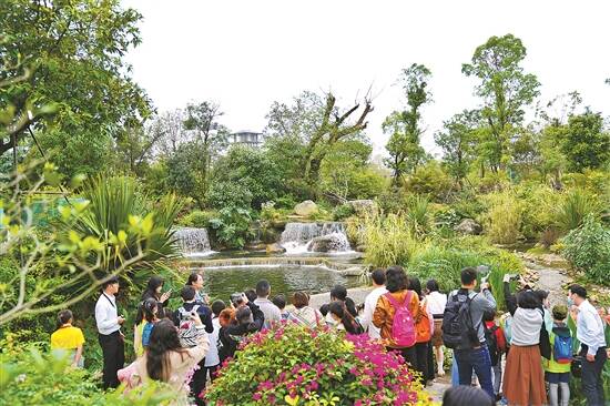 向研学团开放的沥滘净水厂,2020年建成的三期项目为地埋式净水厂。相比传统净水厂,地埋式净水厂将大部分生活污水处理工序转移至地下厂房,腾出地面空间。作为全国第一座建设地埋式净水厂的城市,广州采取了“地下建厂地上建园”的方式建设运营地埋式净水厂。研学团“团友”走进该厂时,看到该厂地面遍种花草如公园,仅从地上看不出是一座生活污水处理厂。当进入地埋式厂房时,就看到生活污水在处理的场景。经处理后的生活污水,水质达到国家一级A及地表五类水较严值,并重新输送回地面经排水口排放出厂。通过从市政管网收集生活污水,经净水厂处理后排放河涌进行生态补水,广州既解决了生活污水未经处理直排河涌的问题,还起到冲刷河涌污垢恢复水生态作用,困扰广州多年的河涌黑臭问题因而缓解。研学团“团友”们通过研学,看到沥滘净水厂用出厂水滋润海珠湿地、营造瀑布水景等用途,“团友”们感受到广州水环境好转所带来的乐趣。“我以后不会往水里乱扔东西,保护水资源。”参团小朋友饶臻说;“我以后会更加重视节约用水。”参团小朋友庄子愉说。