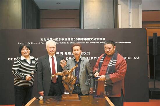 许鸿飞:2014年,中法建交50周年之际,我在巴黎卢浮宫卡鲁斯厅举办个展《欢乐岭南》,将“肥女人”系列雕塑带到大雕塑家罗丹的故乡。展览面积有750平方米,展出了50件作品,除《吻》等少数经典作品外,绝大部分是新创作的。展览期间,我还将曾游历各国参展的代表作《天轮》捐献给卢万河畔的莫雷市,并获颁荣誉勋章。