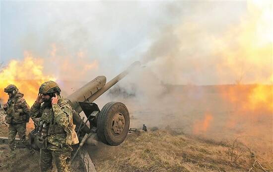 巴赫穆特地区,乌克兰军队用榴弹炮袭击俄军阵地 图/视觉中国