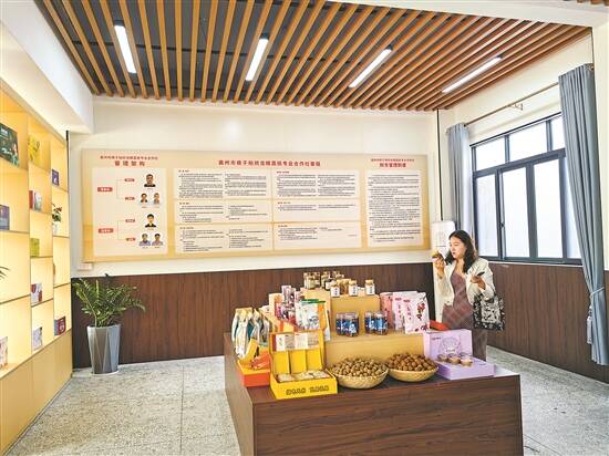 在广场左边,“国家农民合作社示范社”“高州市根子柏桥龙眼荔枝专业合作社”两块白色牌匾特别显眼。进入柏桥龙眼荔枝专业合作社,左边是龙眼和荔枝加工品展厅,右边是一个图书室。在龙眼和荔枝加工品展厅内,麻雀虽小五脏俱全,摆放着龙眼干、荔枝干、荔枝蜜、黄皮干等加工品,琳琅满目。