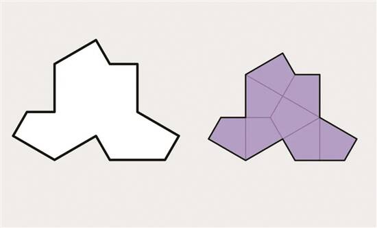 但终于,这个图形被英国东约克郡一位退休印刷技术员大卫·史密斯发现了——这是一个十三边形(也称为十三角形),它有一个特殊的性质:它可以被分成四个更小的相同形状(称为子瓦片),或者可以被组合成四个更大的相同形状(称为超级瓦片)。这意味着这个十三边形可以无限地缩小或放大,并且可以用来铺满一个平面,而不会“周期性”地出现有规律重复的图案。