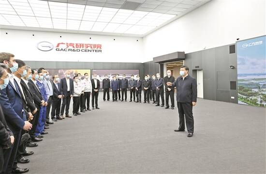 4月12日下午,习近平在广汽研究院同科技人员、企业家、职工、外资企业代表等亲切交流