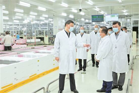 4月12日下午,习近平在乐金显示广州制造基地察看生产组装流程
