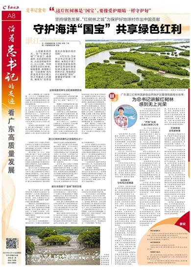“我是亲历者,内心会更激动、更澎湃。(总书记的到来)对所有生态保护、自然资源保护的从业者来说,这都是很强的激励。这让我感到无上光荣。” 4月12日,广东湛江红树林国家级自然保护区管理局副局长张苇,接受羊城晚报记者采访时说。
