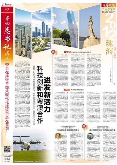 在总书记的亲切关怀和有力指导下,珠海这片改革热土洋溢青春气息,迸发活力。在航空工业通飞华南公司,关于AG600最新进展的好消息不断传出,“航空报国”的巨大使命感、责任感一直在激发着全体研制人员昂扬的斗志。