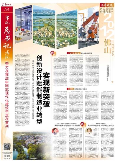 在广东工业设计城,总书记勉励广东提高工业设计水平,提升产品附加值,增强中国制造业竞争力。如今,广东工业设计城已聚集设计研发人员超过8000名,设计城从1.8万平方米核心启动区扩展至2.94平方公里工业设计产业聚集区,孵化原创品牌50多个,累计知识产权数量从1821项增加至8695项,设计服务产值从3亿元增长至17.59亿元,形成了以广东工业设计城为核心,创新产业链聚合布局的产业生态,引领佛山“制造”迈向“智造”转型,成为中国乃至全球工业设计产业高地。