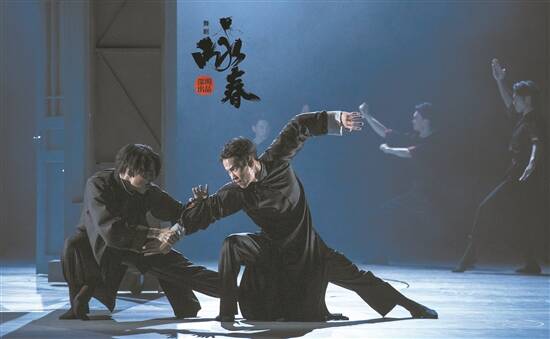 舞剧《咏春》是个“双线”故事,一边是叶问的故事,一边是记录叶问故事的人的故事。前者为主线,电影里的叶师傅远赴他乡,怀抱“咏春堂”牌匾踏入群雄林立的武馆街,克服困境、扶危济困、破除门户,传承中华武术。另一条线,是跨越近半个世纪后,深圳剧组摄制电影《咏春》的片场,剧组众人怀抱梦想奔赴山海,来到深圳,通过拍片来造梦、追光、塑造英雄,追寻心中的那束光。一路向光,不坠志向,这也是另一种武林的诠释。冯双白表示:“双线叙事的结构,两个时代的故事与人,在剧中彼此呼应共振。这个故事因‘英雄’而来,由‘追光者’而展开,最终落在‘理想’。这与深圳的城市精神一脉相承。”