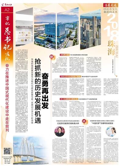 珠海——青春之城、活力之都,在总书记的亲切关怀下,正抢抓新的历史发展机遇,各项事业迈上新台阶。近年来,珠海聚焦“产业第一”,实体经济发展成效显著,发展动力活力不断增强。珠海将深入贯彻习近平总书记对广东、珠海系列重要讲话和重要指示精神,把高质量发展作为珠海现代化建设的首要任务,坚持“制造业当家”,努力成为全省发展又一重要引擎和珠江口西岸核心城市。