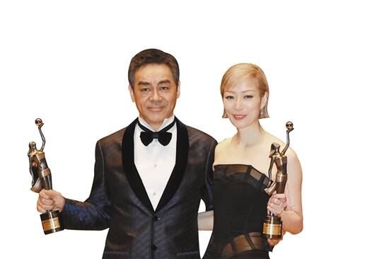 刘青云、郑秀文手持奖杯合影 图/视觉中国