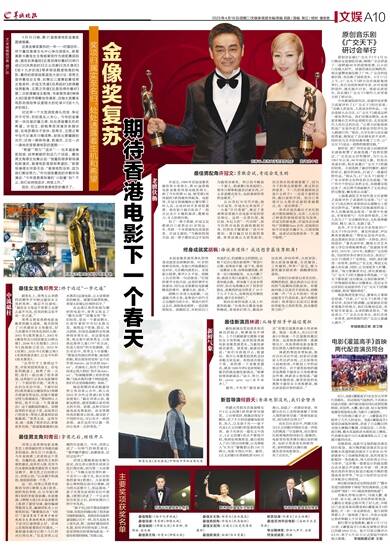 “希望”“努力”“进步”……在本届金像奖现场,经常都能听到这几个词语。最佳男主角得主刘青云说:“我看到很多新导演和新演员,香港电影是很有希望的。”新晋导演得主何爵天说:“香港电影没死,因为我们都会努力。”作为颁奖嘉宾的许鞍华导演说:“今年是香港导演的‘小阳春’吗?不止,我们会持续进步、持续上升。”