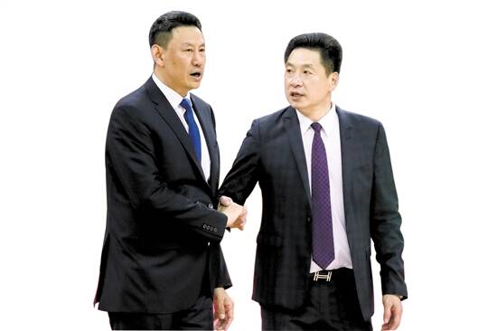 江苏队主教练李楠(左)与上海队主教练李春江 新华社发
