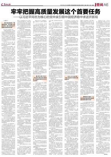 “牢牢把握高质量发展这个首要任务”“在强国建设、民族复兴的新征程,我们要坚定不移推动高质量发展”——习近平总书记的重要指示坚定明晰。