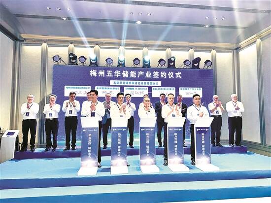 这场推介会上,梅州市人民政府与南方电网储能股份有限公司签订《储能产业发展合作共建协议》;五华县人民政府与南方电网调峰调频(广东)储能科技有限公司签订《五华县新型储能产业园战略合作协议》,同时分别与6家企业签订项目协议;现场4家储能产业上下游企业签订《五华新能源共享储能项目租赁协议》。
