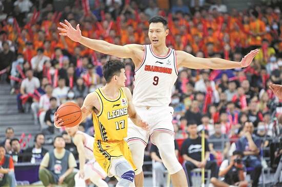 易建联在比赛中防守 羊城晚报记者 詹淑真 摄