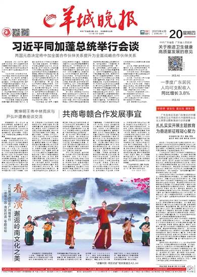 记者在活动现场看到,伴着琵琶、阮、箫、古筝的和鸣,女子弹拨乐音画《山水春雨图》拉开了演出序幕(见图,羊城晚报记者周巍摄)。随后,杂技与街舞演出《跃-滚动的青春》展示出满满的青春活力。舞蹈《在河之洲》仿佛穿越了时光,从《诗经》中款款走来。粤剧《南粤华彩》的唱段更是让中外嘉宾叫好。观众纷纷用手机或相机记录精妙绝伦的演出。