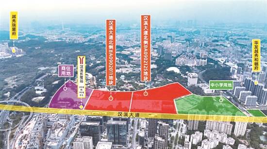 汉溪大道北侧BA0902011地块的成交总价为827425万元,楼面地价为32176元/平方米。汉溪大道北侧BA0902125地块的成交总价为841455万元,楼面地价为33434元/平方米。后者的楼面地价比2020年越秀地产拿下越秀·和樾府地块时的32405元/平方米还高一些。最终这两宗地双双被华润长隆联合体摇中并拿下。