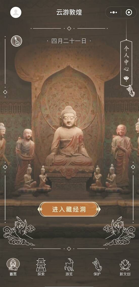2020年,“云游敦煌”小程序正式上线,超过2亿人次参与线上互动,累计访问量超过6000万次,有效推动了敦煌文化的活化利用,释放了文化的深沉力量……