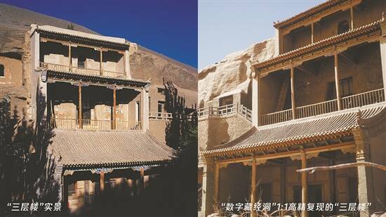 现实中莫高窟“三层楼”和数字世界的“三层楼”对比