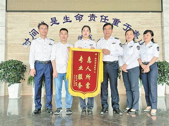 近日,一个特殊的电话打进了深圳120——市民康先生求助称,他妻子生二胎,分娩在即,赶不及去医院,紧张时刻如何处理?调度员邓曼莉通过电话有序指导康先生为妻子接生。孩子出来后没有呼吸,康先生又在邓曼莉电话指导下做了心肺复苏,使孩子转危为安,直到医生赶到。4月12日,康先生为宝宝办完出院手续后,就带着锦旗来到深圳市急救中心当面致谢。记者了解到,目前康先生一家已回老家,孩子长得很好。