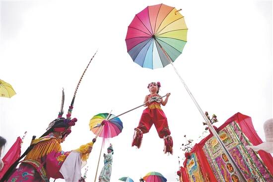 活动现场,随着一声锣响,由6个民俗文化特色方阵以及28板飘色作品组成的巡游队伍,在进行简短的表演展示后,从玉虚宫出发,沿文林坊大街、沙湾大道、中华大道进行巡游。巡游队伍吸引了大量市民参观。
