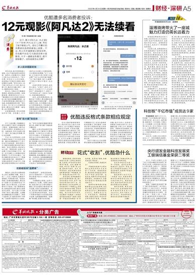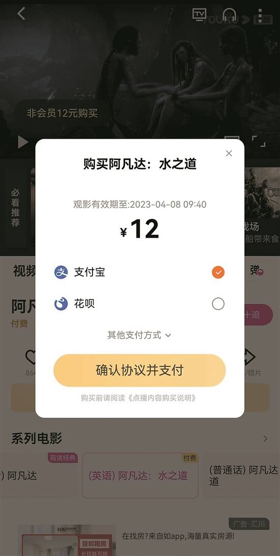近日,影片《阿凡达:水之道》(以下简称《阿凡达2》)上映,带旺了线下影院人气。部分工作繁忙的消费者则选择居家线上观影。不过,有人向羊城晚报记者投诉称,在优酷平台花12元购买的单片观影权,片子一遍都没有看完,就不能续看了。这到底是怎么回事?