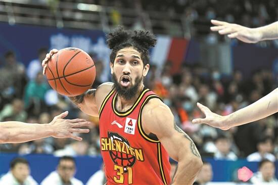 深圳队球员阿斯起亚·布克在比赛中持球进攻 新华社发