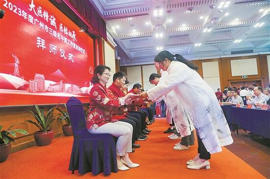 活动现场举办了拜师仪式,40名学员领读拜师帖、为导师奉茶。据介绍,建设工作室的名中医们将通过讲座、研究指导、出诊等方式,为基层社区医疗中心提供支持,并培养基层中医药人才,提高广州基层医疗机构的中医药服务能力。