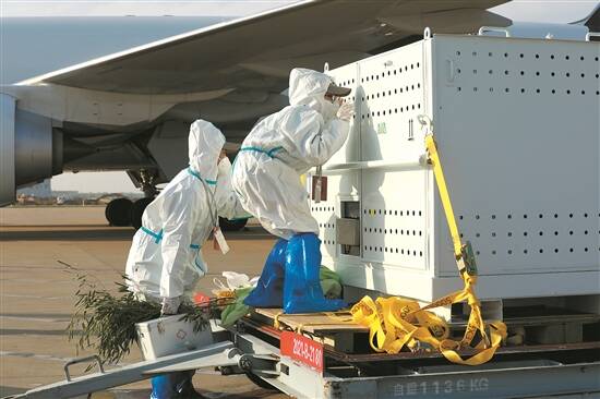 北京时间4月27日,旅美归国大熊猫“丫丫”抵达上海浦东国际机场 新华社发