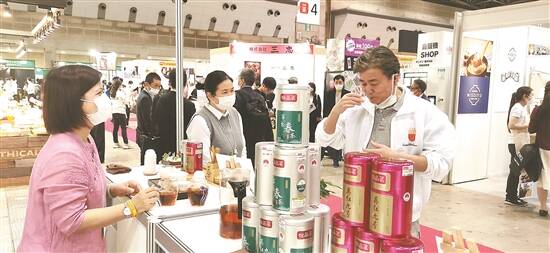 在茶道盛行的日本,茶叶也是日常生活重要的消费品。目前正值春茶头采上市,此时的春茶,鲜叶芽头,肥硕饱满,色泽翠绿,茶树经一冬的休养生息,叶芽中蓄积的营养成分充足,制成茗茶冲泡后,茶香馥郁高扬,茶汤浓醇鲜爽。在展会上,英德怡品茗带来的“英红九号”一经亮相就受到了热烈关注。