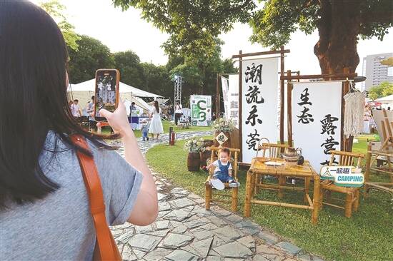 搭帐篷、支摊位、贴装饰,生态露营节现场,只见摊主们精心装扮着自家的摊位,为假期游园市集亮相做足准备。记者了解到,生态露营节吸引了超过60家商户参与,不仅有围炉冰茶、竹篓灯笼茶、现磨咖啡等饮食摊位,还有趣味射箭、草坪足球、飞盘掷准等运动互动项目,潮玩、非遗文创产品区更展示了不少东莞特色非遗产品,让人眼前一亮。当天下午5时许,活动现场的市民游客逐渐增多,大家或拍照“打卡”,或提前开启节日“逛吃”模式。