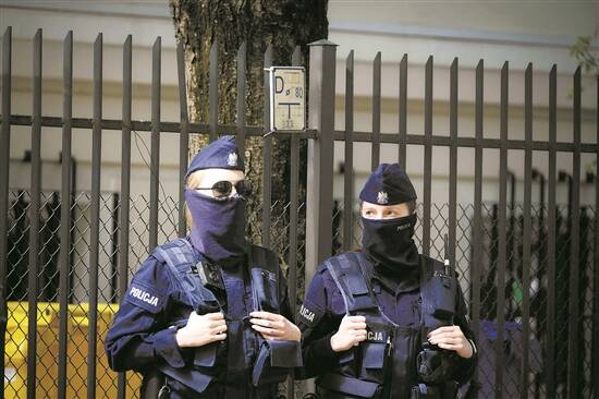 两名波兰警察守卫在涉事学校门口 图/视觉中国