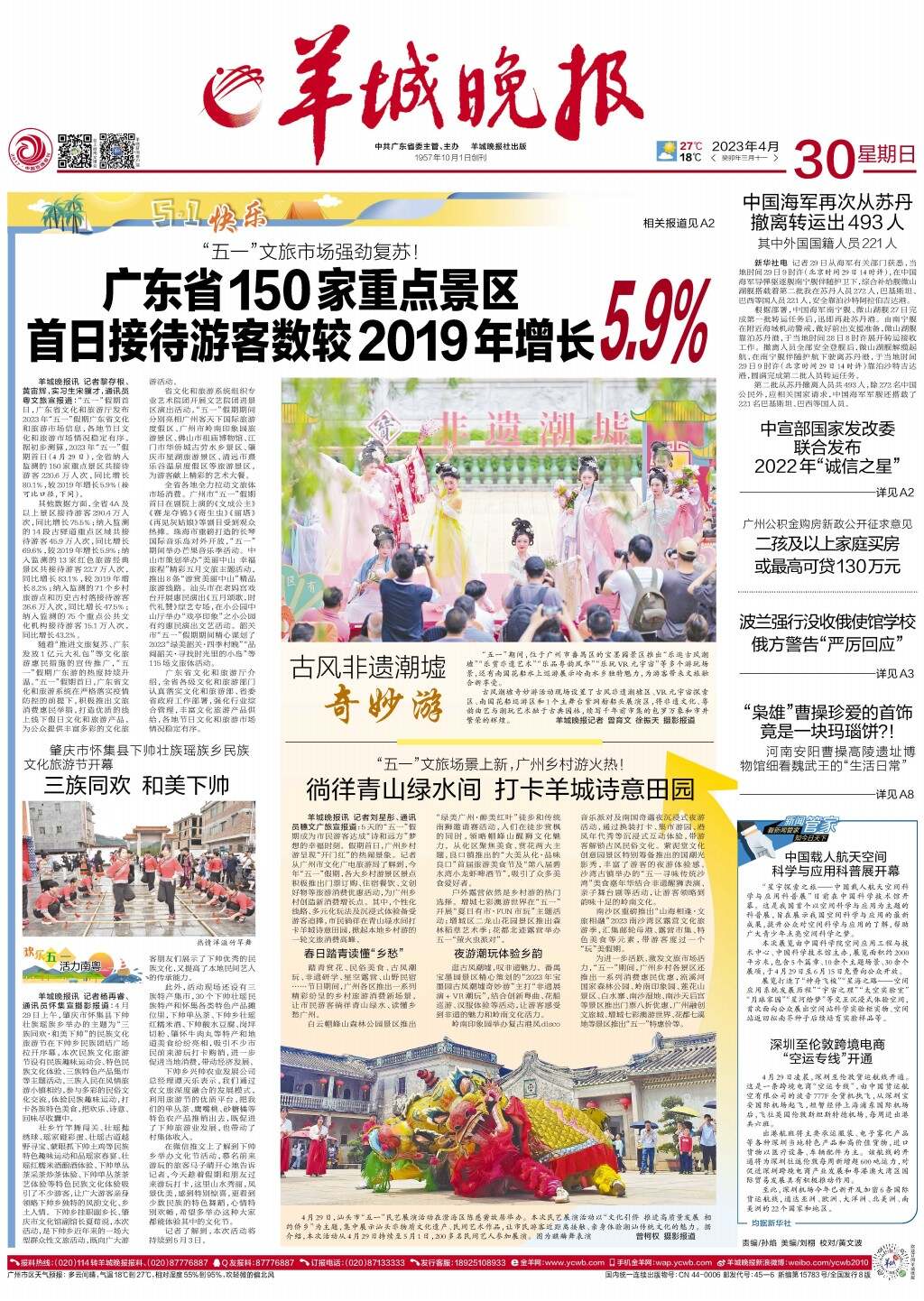 广东省150家重点景区首日接待游客数较2019年增长5.9%