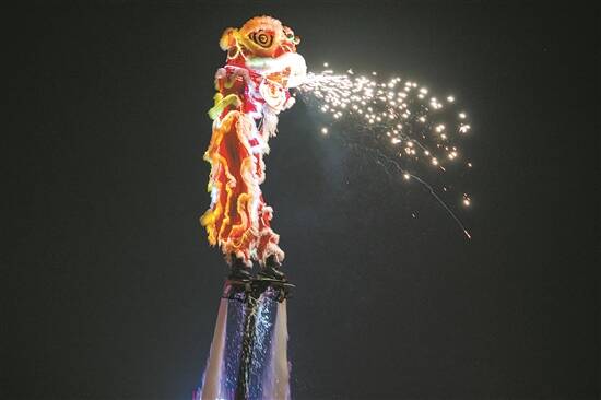 “第一次见!”“太壮观了!”5月1日晚,南海醒狮自千灯湖湖面凌空而起,嘴中不时喷吐出绚烂烟花,现场观众发出阵阵惊呼。