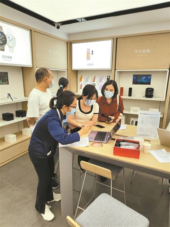 记者随机走进一家华为门店询问,店员热情地向记者介绍,目前新上市的产品都已到店,大多支持现货购买或预定。假期店内人流是平日的数倍,顾客大多是来看最新上市的产品,销售额很可观。