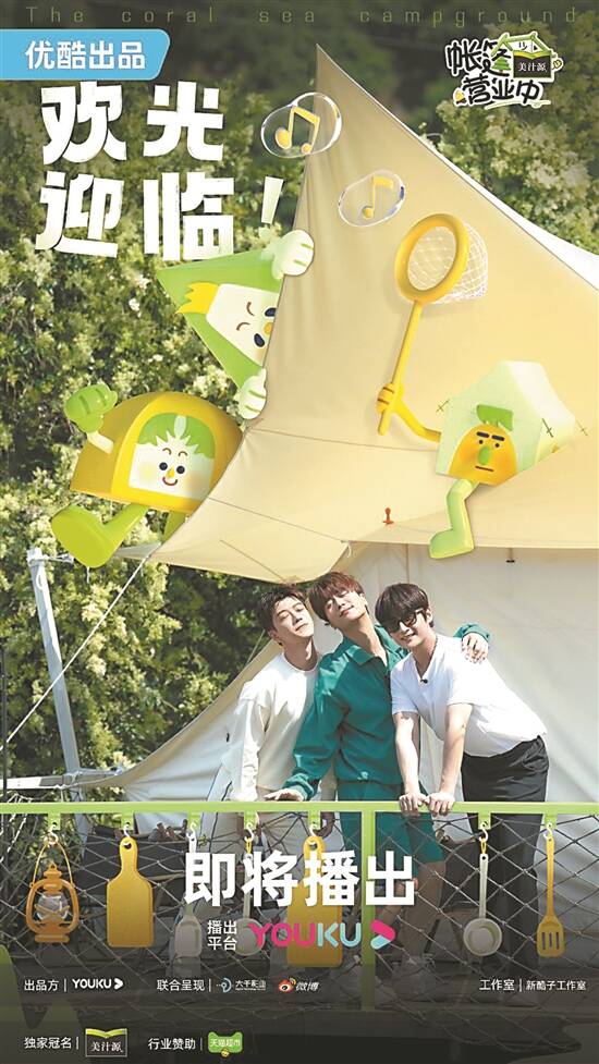 在户外露营综艺《帐篷营业中》中,陆虎、王栎鑫、张远等三位“0713兄弟团”艺人组成了快闪露营兄弟团,上山、觅湖、伴海,在三个营地中精心策划了六场不同主题的露营活动,主打“拥抱山湖海”解压之行。每次露营,露营兄弟们会邀请KOL(关键意见领袖)和各类有趣的达人,一起逃离现实,讨论不同的文化、生活话题,度过治愈的两天一夜,获得重新出发的力量。