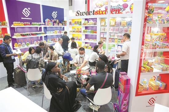 同时,来自潮州的丹青、汕泰、创辉、百盛等食品参展企业,其展位上的新品引来众多采购商驻足。在广东斯威特食品有限公司展位,今年的企业展品中新品增加了40%,客商多到出现业务员不够接待的情况。该展位的负责人表示,采购商主要来自“一带一路”沿线国家和欧美客户,近两天接待的客商超300人,达成意向订单金额超300万美元。
