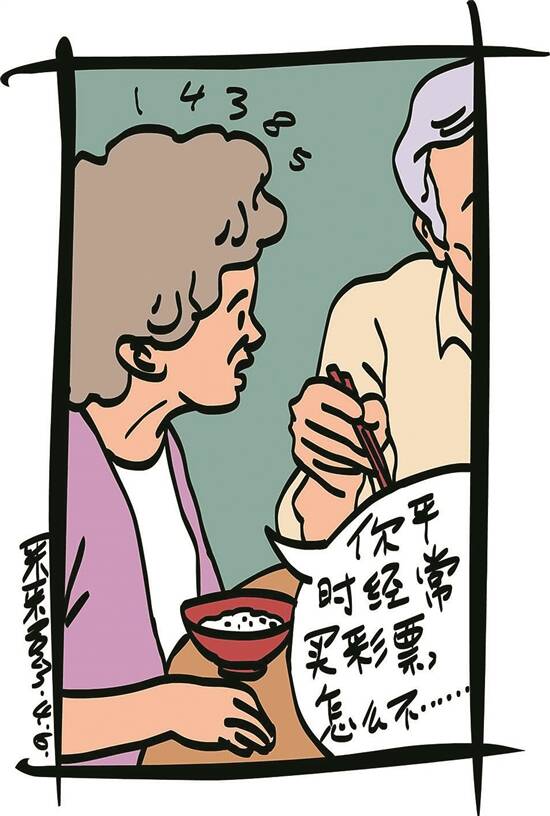 老吴的老伴见状,怕让儿女们为难,破坏了团圆的气氛,连忙对老吴说:“老吴,你对点菜倒是要求高,生怕浪费一点。那我问你,你平时经常买彩票,怎么不说自己是在浪费钱呢?”