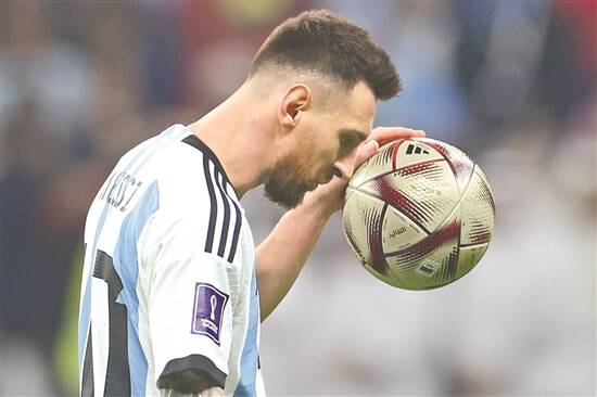 梅西在卡塔尔世界杯比赛中 新华社发