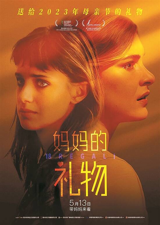 电影《妈妈的礼物》近日发布定档海报,宣布将于5月13日——母亲节前一天全国上映。影片在豆瓣评分高达7.2分,曾获得第66届意大利大卫奖的青年大卫奖和最佳女主角、最佳女配角两项提名,以及第75届意大利电影银丝带奖两项提名。