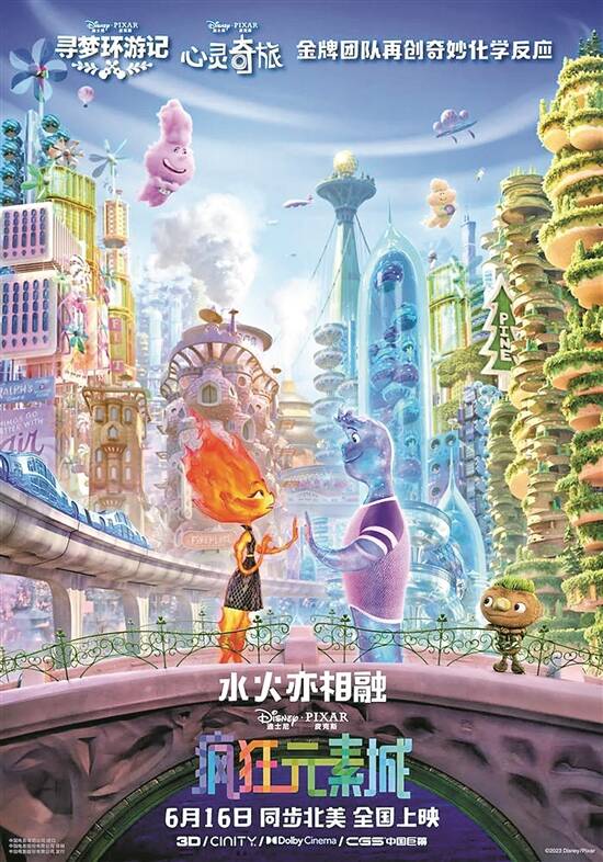 由中影发行,迪士尼·皮克斯出品的《疯狂元素城》将于6月16日在内地公映。曾打造奥斯卡最佳动画《寻梦环游记》、口碑佳作《心灵奇旅》等现象级经典的皮克斯金牌班底再度集结,用华丽缤纷的奇思妙想打造风、火、水、土四大元素共同生活的奇趣城市。