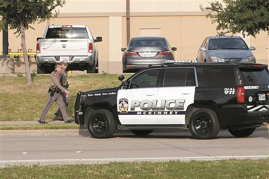 警车停在美国得克萨斯州达拉斯近郊发生枪击事件的购物中心附近 新华社发
